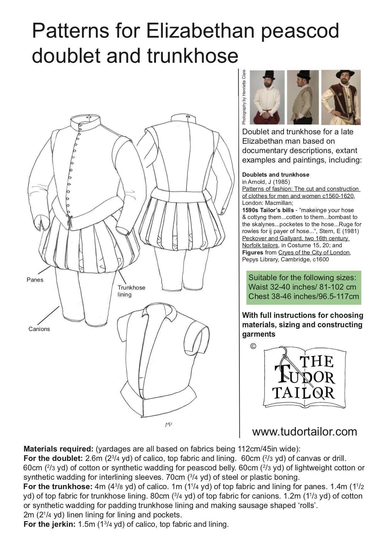 Pattern For Men S Elizabethan Peascod Doublet And Etsy